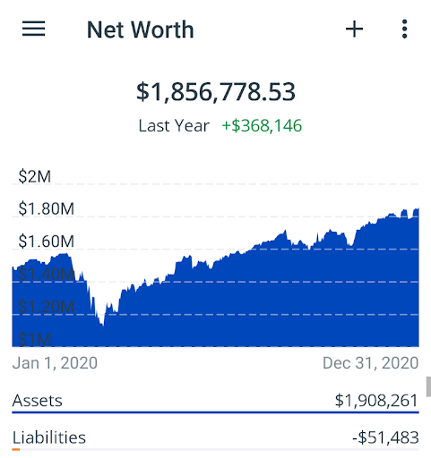 2020 * $119,063 * $1,856,778 – Wife stopped teaching in May and received paychecks until September. We filled our buckets as best we could: 457 ($26k *2), 403b ($26k + $16k), IRA ($7k + $3.5k), and HSA ($8.1k). Plus, we also had combined employer 403b contributions of $6,463. All in all, another banner hardcore savings year!