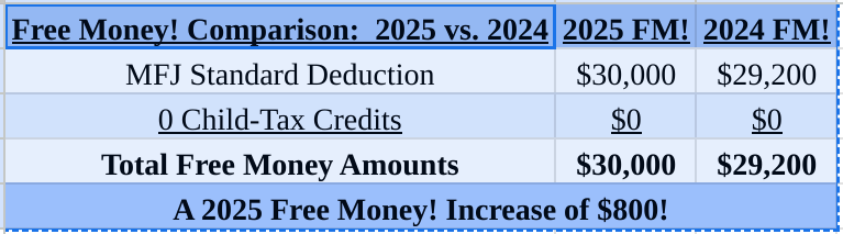 Since the MFJ standard deduction is going up by $800, there is a little good news for 2025. Here is how our 2025 FM! amount compares to last year’s amount: