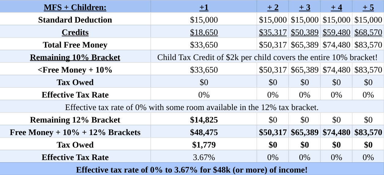 If you have children who qualify for the child tax credit and your filing status is “Married Filing Separately,” here’s your table: